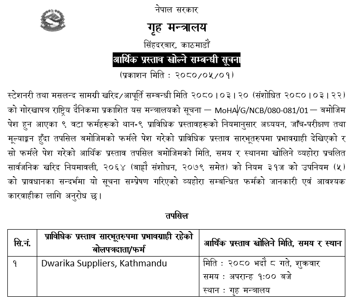आन्तरिक व्यवस्थापन महाशाखा / कार्यालय व्यवस्थापन तथा जिन्सी शाखा
