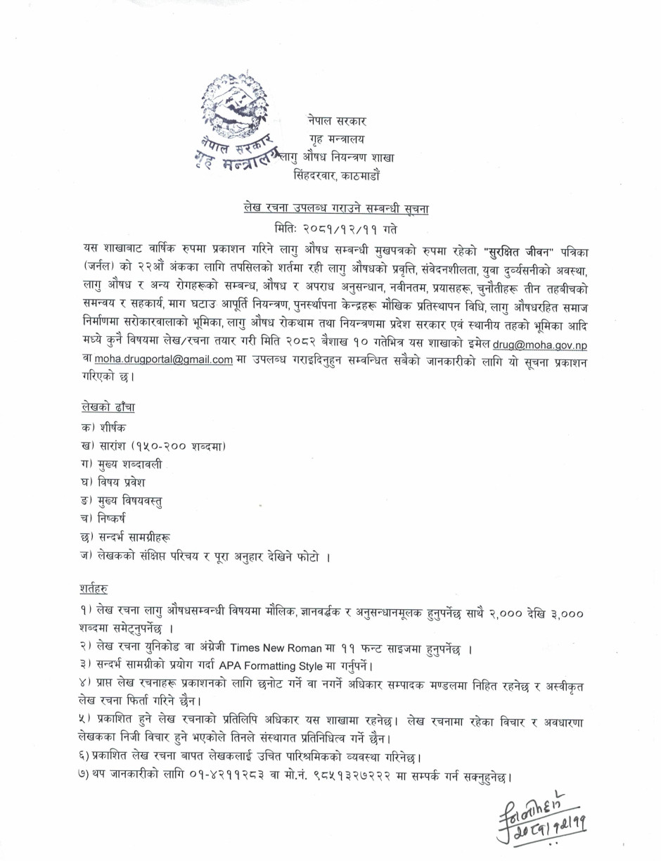 लेख रचना उपलब्ध गराउने सम्बन्धी सूचना