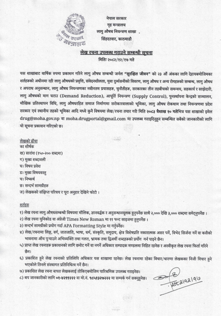 लेख रचना उपलब्ध गराउने सम्बन्धी सूचना