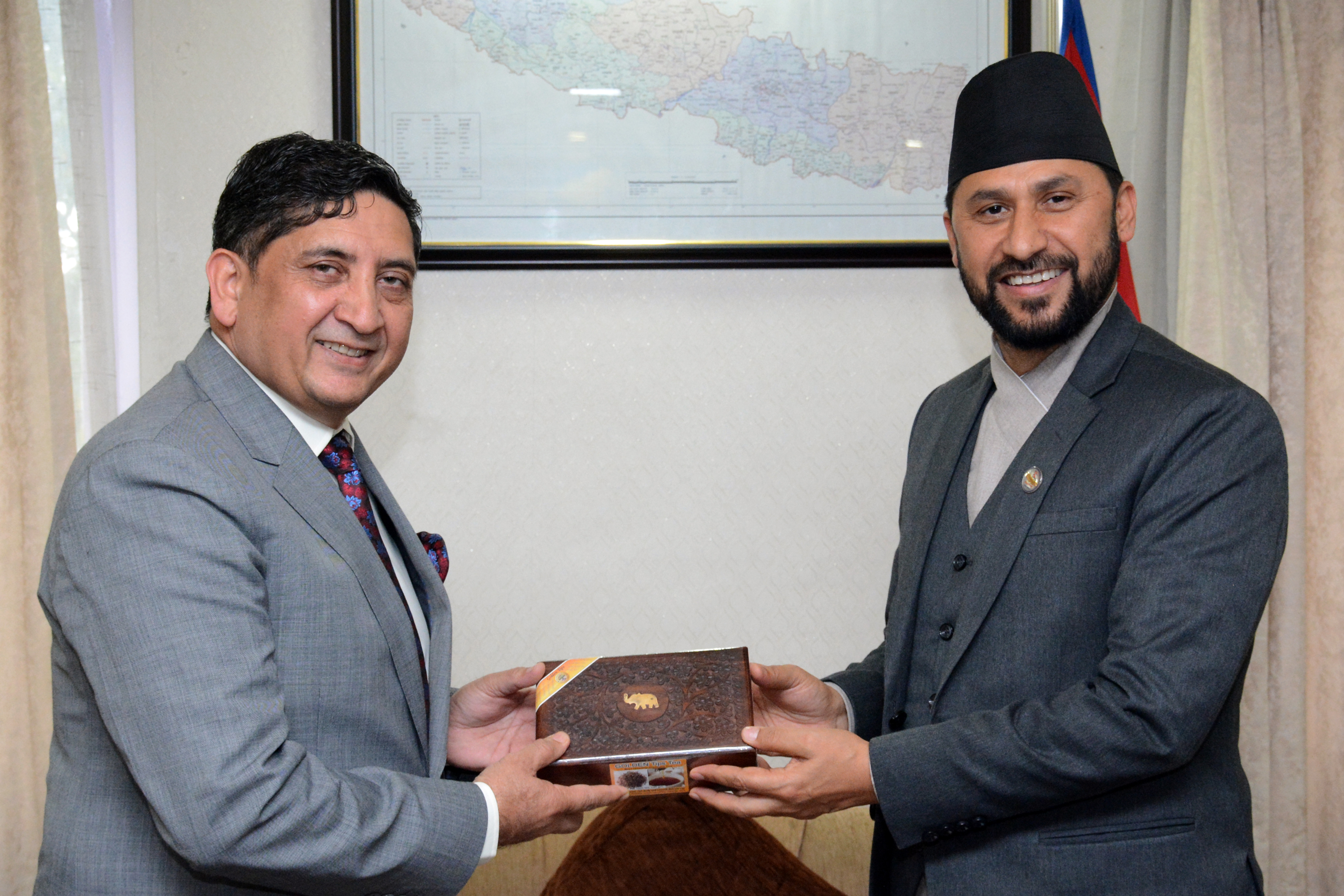 माननीय गृहमन्त्री श्री सुधन गुरुङज्यू र नेपालस्थित विभिन्न देशका कूटनीतिक निकायका पदाधिकारीज्यूहरुबीच भेटघाट