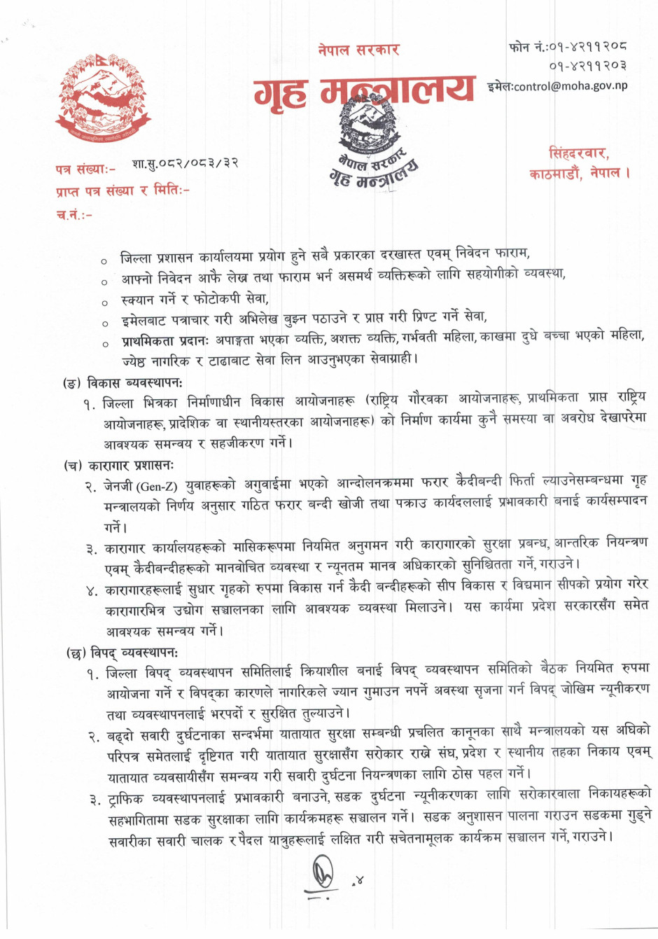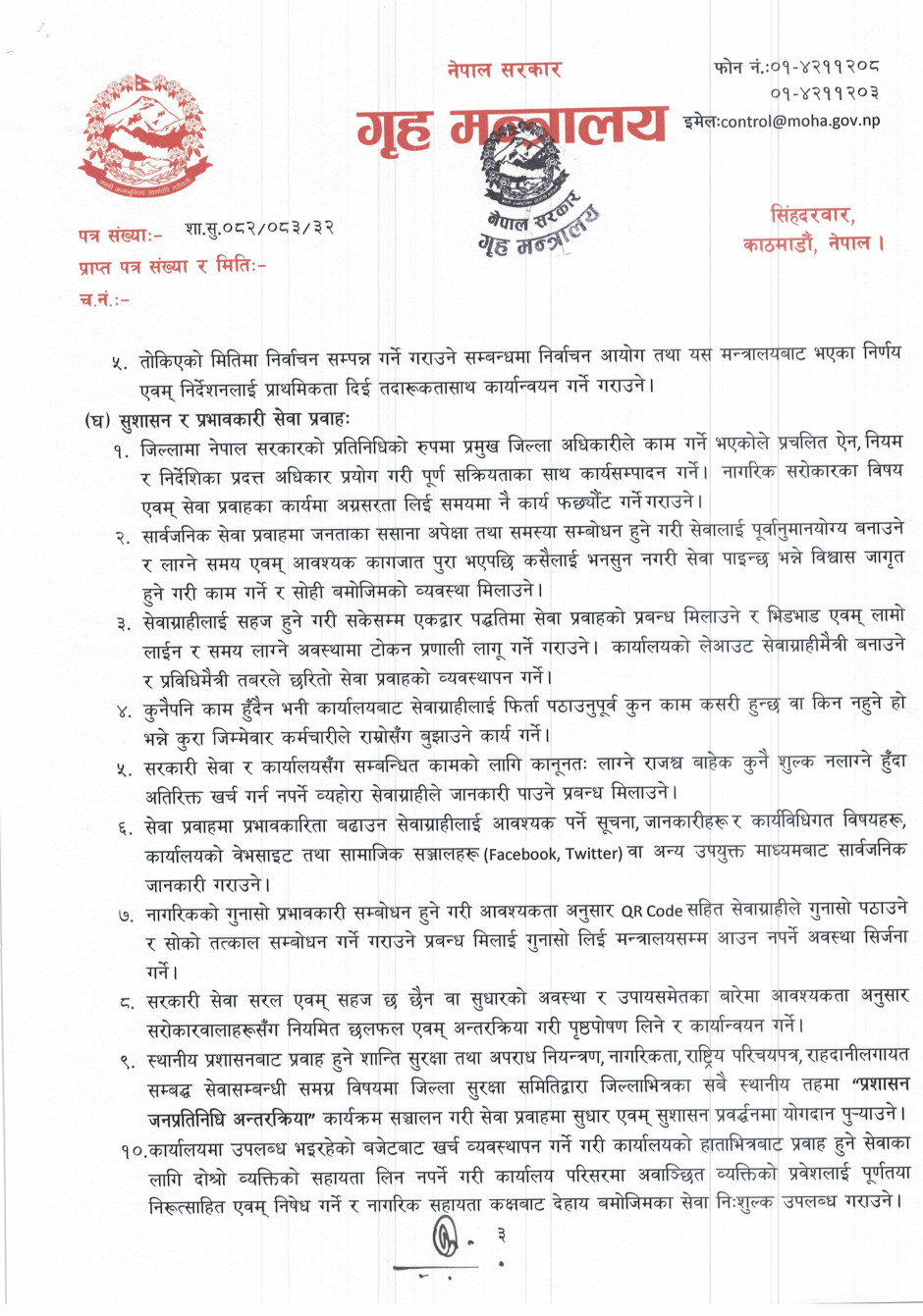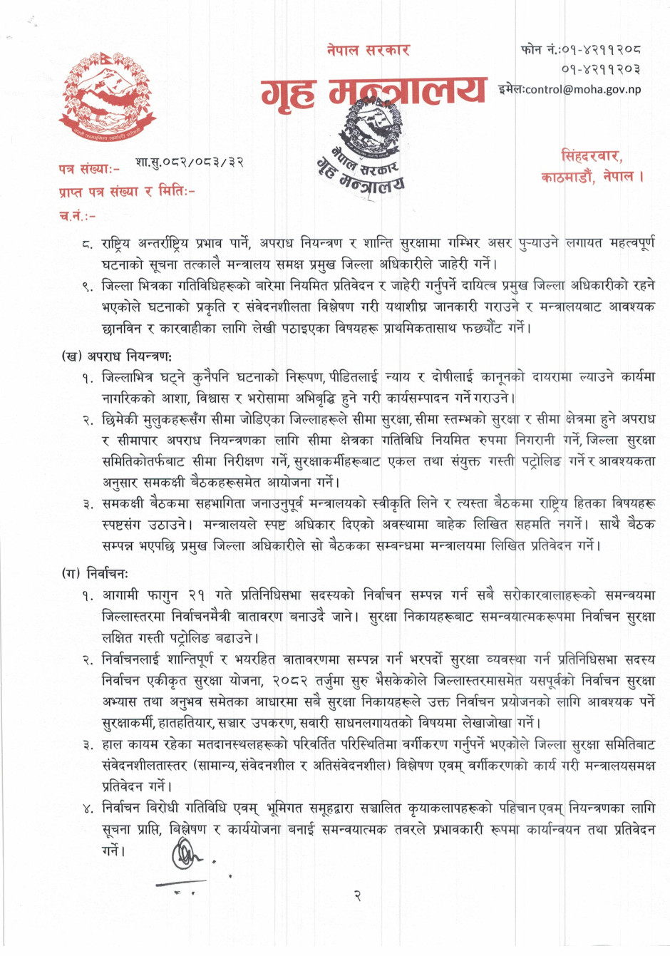 गृह मन्त्रालयसँग सम्बन्धित गुनासोका लागि सम्पर्क नम्बर