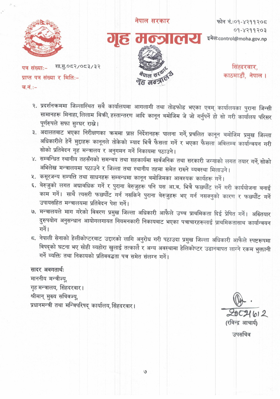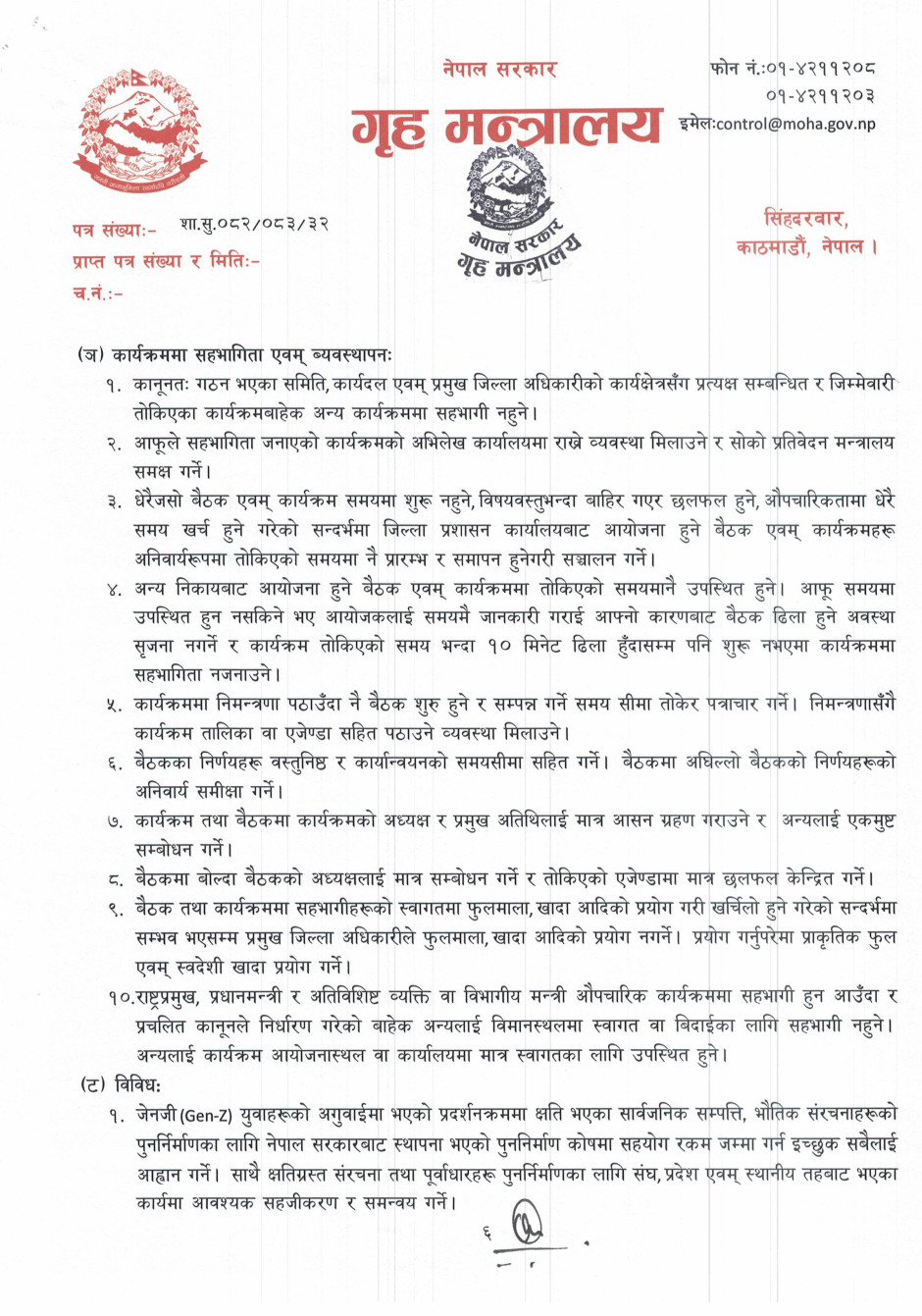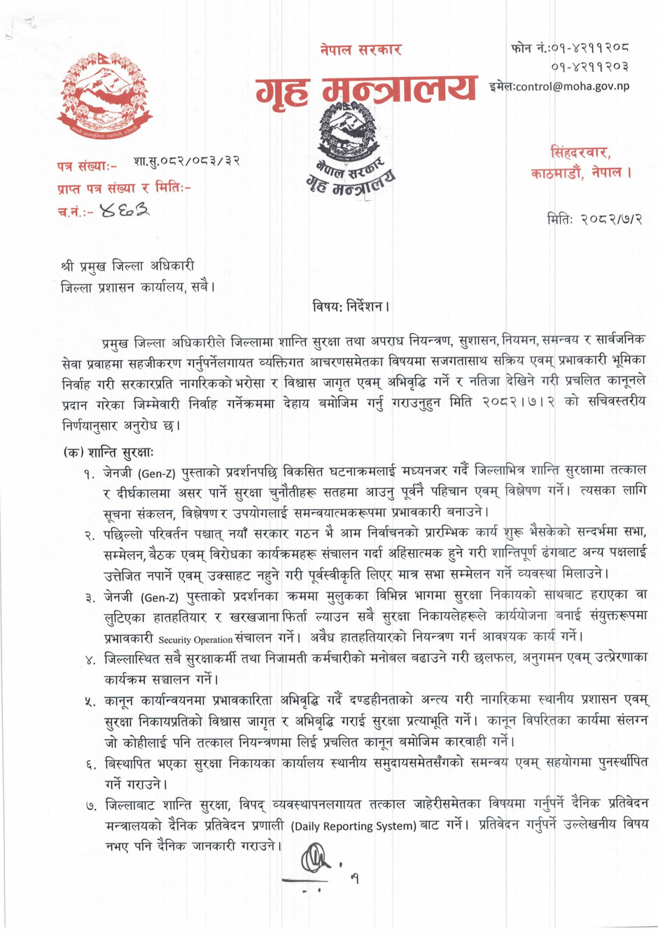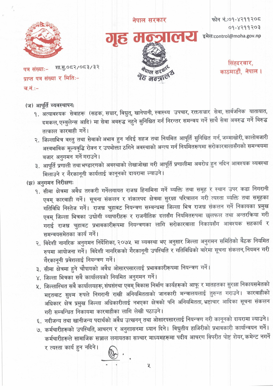 गृह मन्त्रालयसँग सम्बन्धित गुनासोका लागि सम्पर्क नम्बर