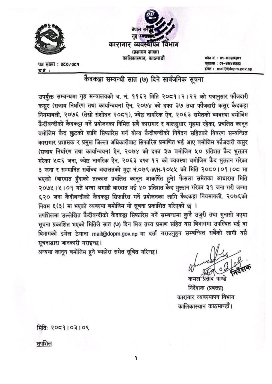 कैदकट्टा सम्बन्धी ७ दिने सार्वजनिक सूचना