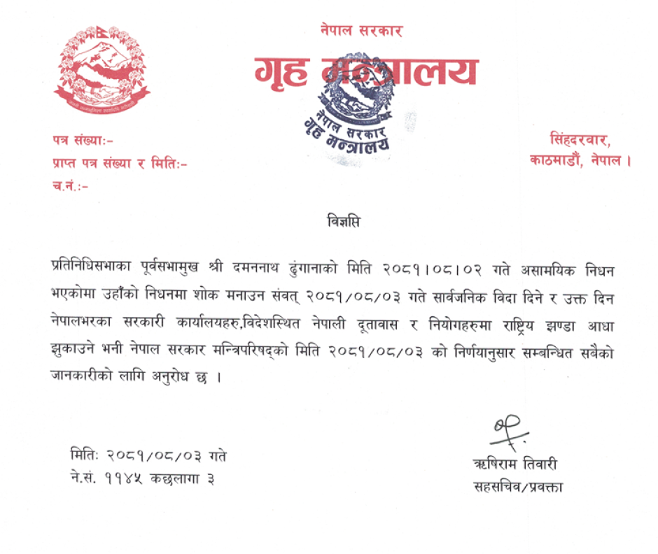 गृह मन्त्रालयसँग सम्बन्धित गुनासोका लागि सम्पर्क नम्बर
