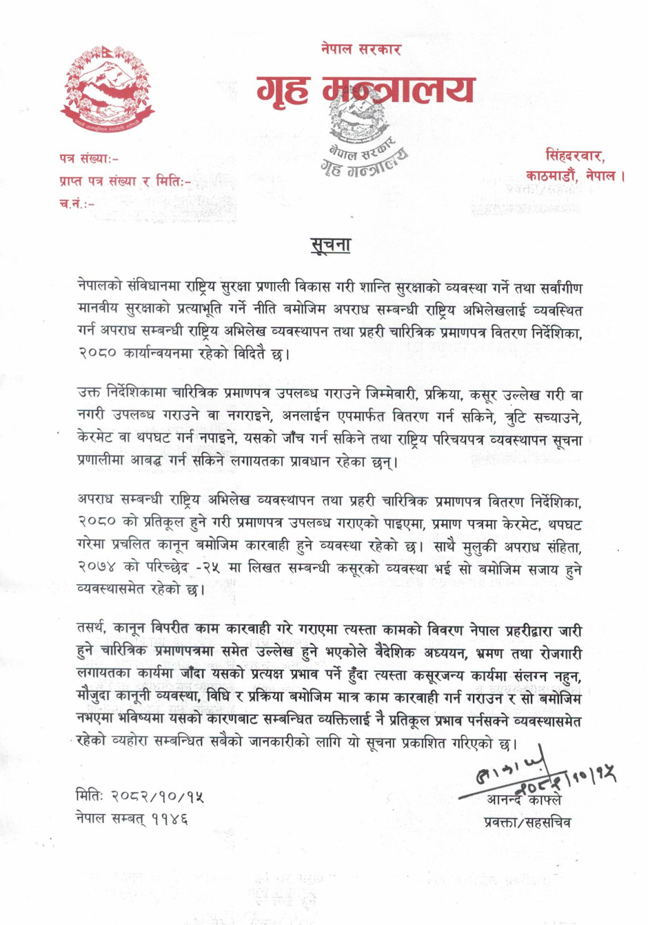 गृह मन्त्रालयसँग सम्बन्धित गुनासोका लागि सम्पर्क नम्बर