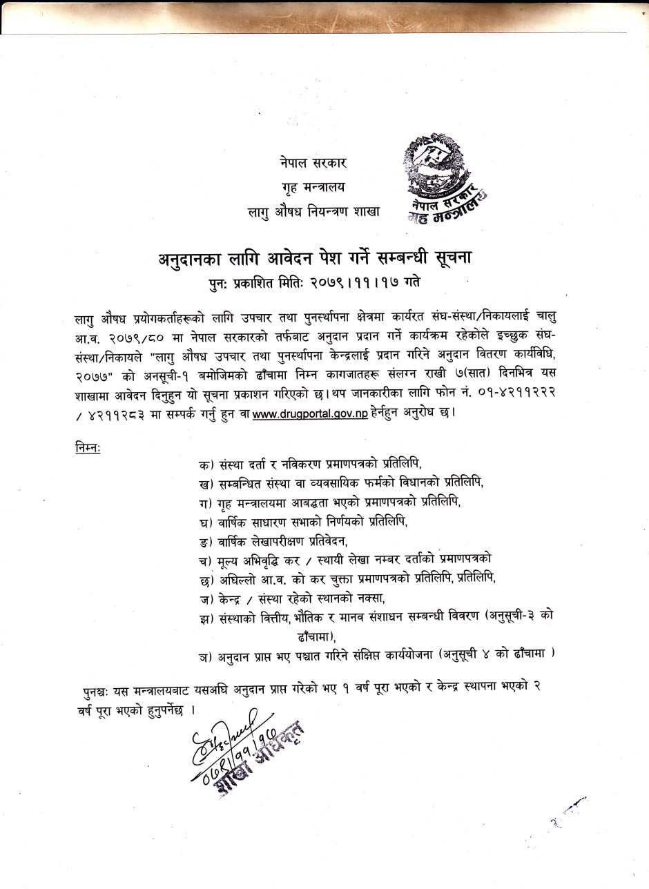 अनुदानका लागि आवेदन पेश गर्ने सम्बन्धि सूचना (पुनः प्रकाशित)