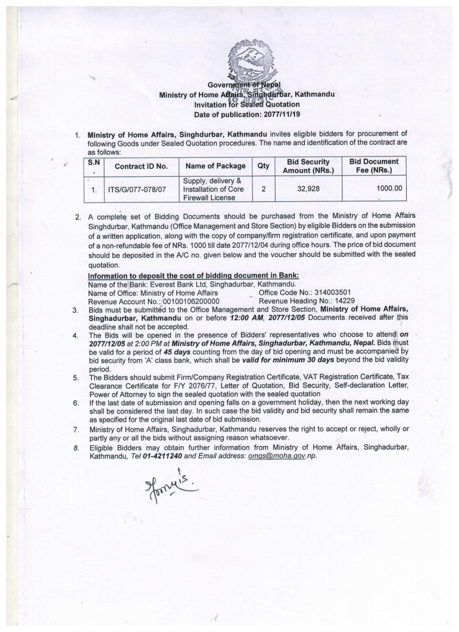 Firewall License खरिद सम्बन्धी शिलबन्दी दरभाउपत्रको सूचना