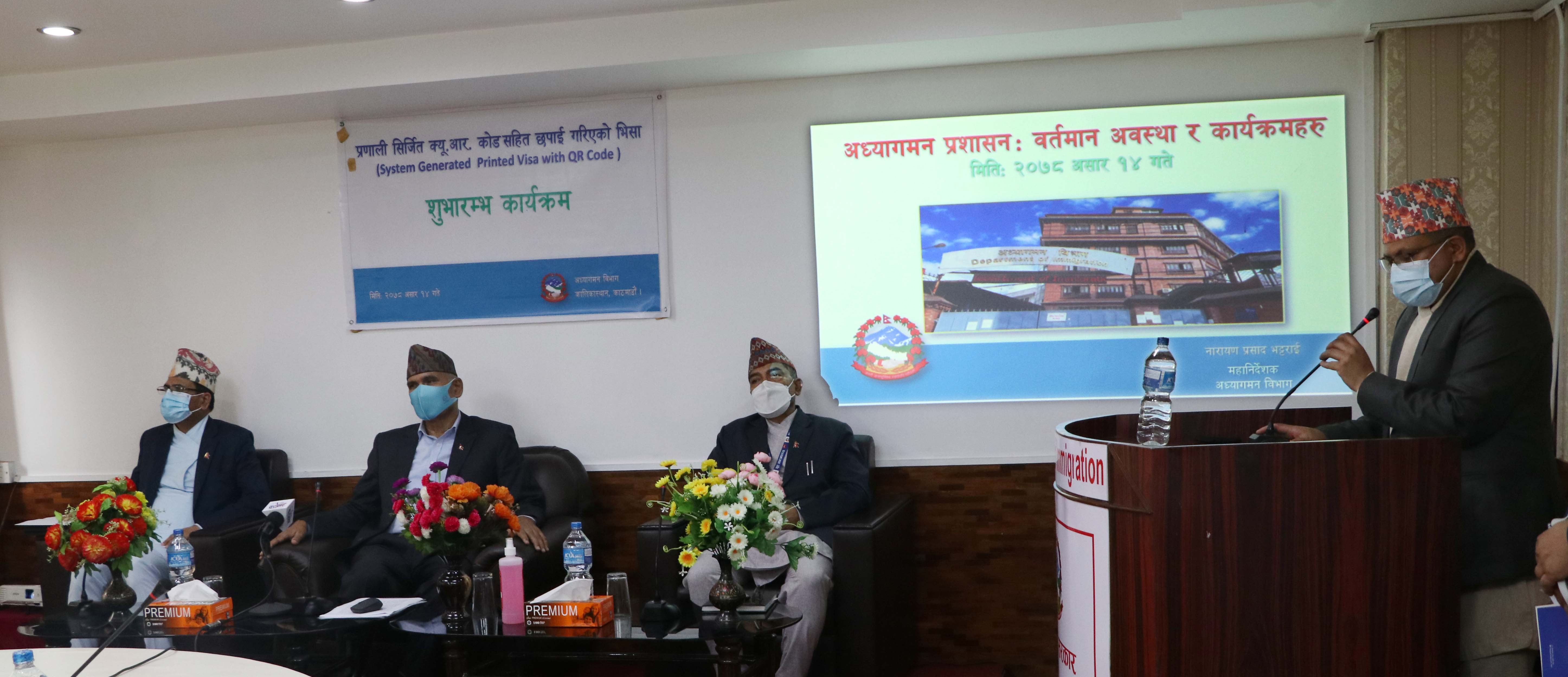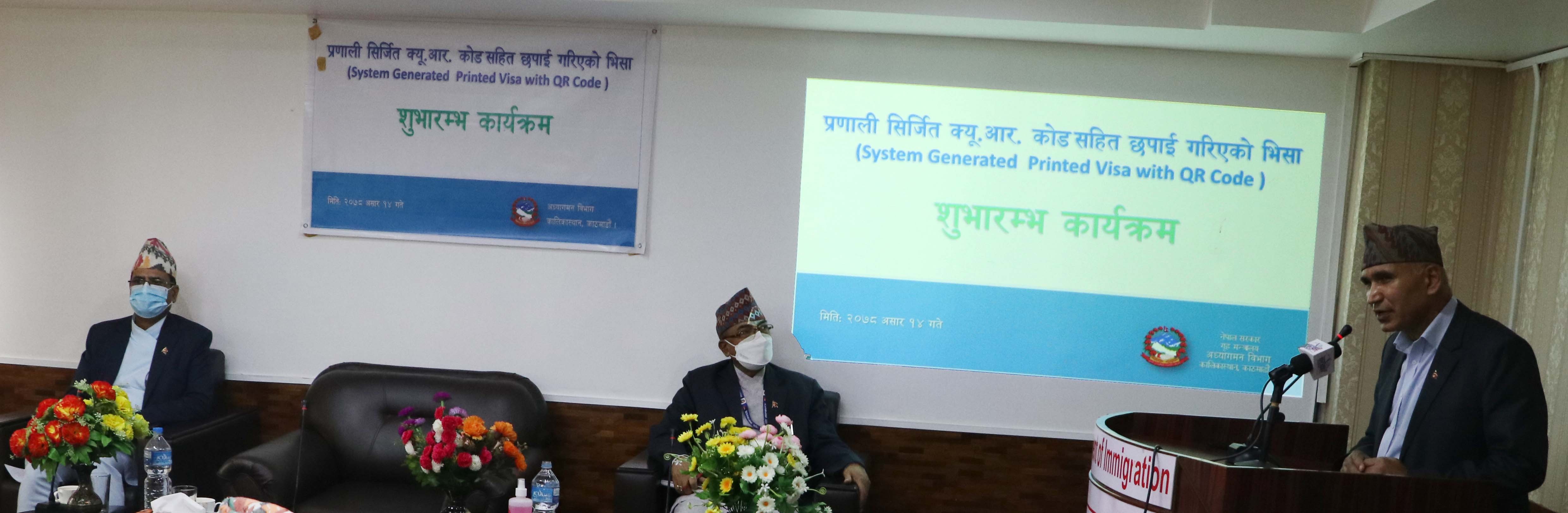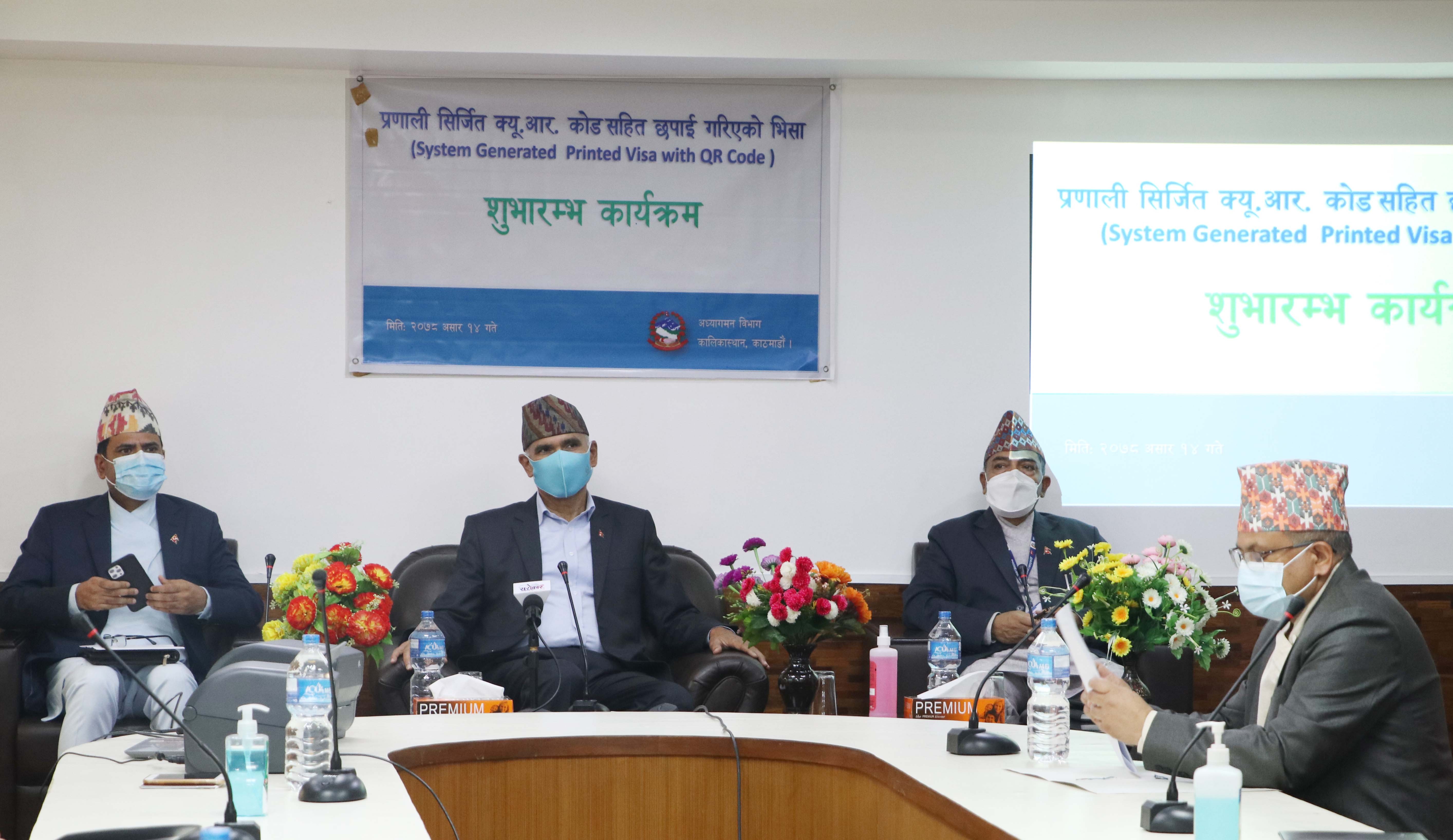 प्रणाली सिर्जित क्यू.आर. कोड सहित छपाई गरिएको भिसा शुभारम्भ कार्यक्रम
