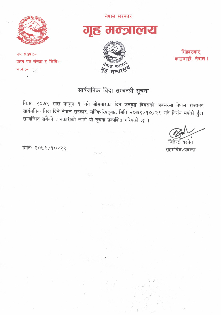 २०८१ सालको सरकारी तथा सार्वजनिक विदा