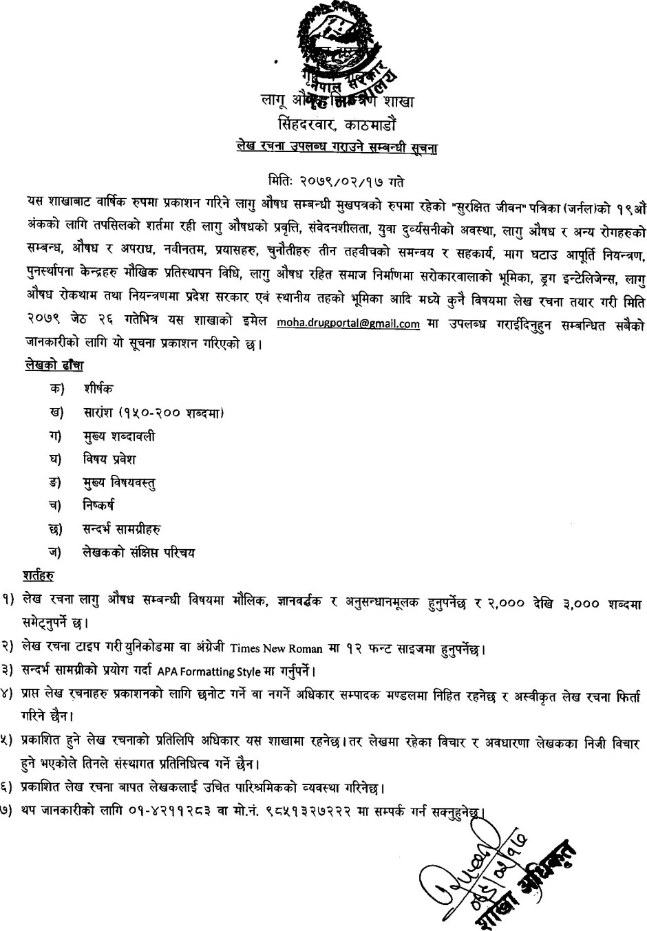 लेख रचना उपलब्ध गराउने सम्बन्धी सूचना