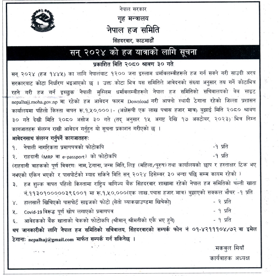 सन् २०२४ को हज यात्राको लागि सूचना
