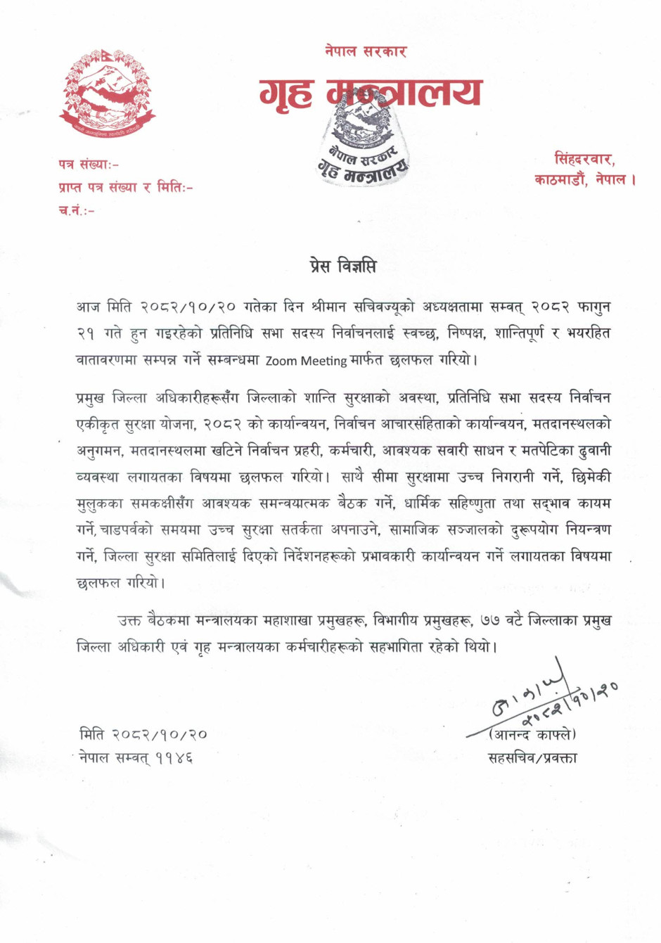 गृह मन्त्रालयसँग सम्बन्धित गुनासोका लागि सम्पर्क नम्बर