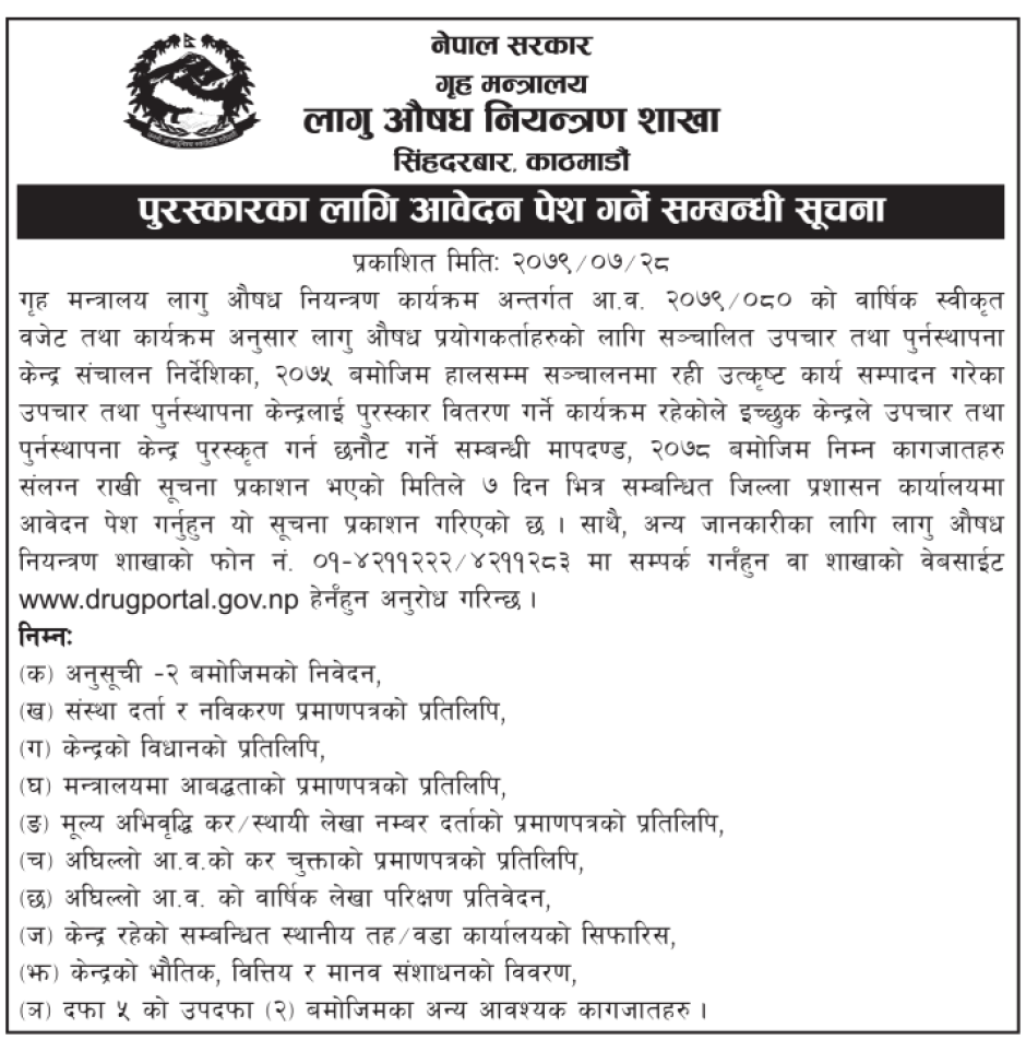 पुरस्कारका लागि आवेदन पेश गर्ने सम्बन्धी सूचना