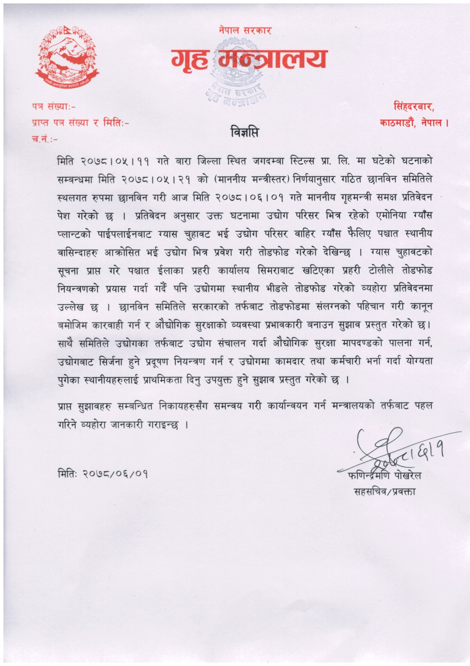 प्रेस बिज्ञप्ति