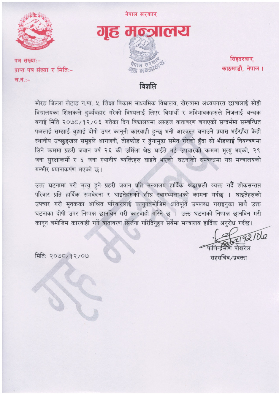 मोरङको लेटाङ घटना सम्बन्धी प्रेस विज्ञप्ति