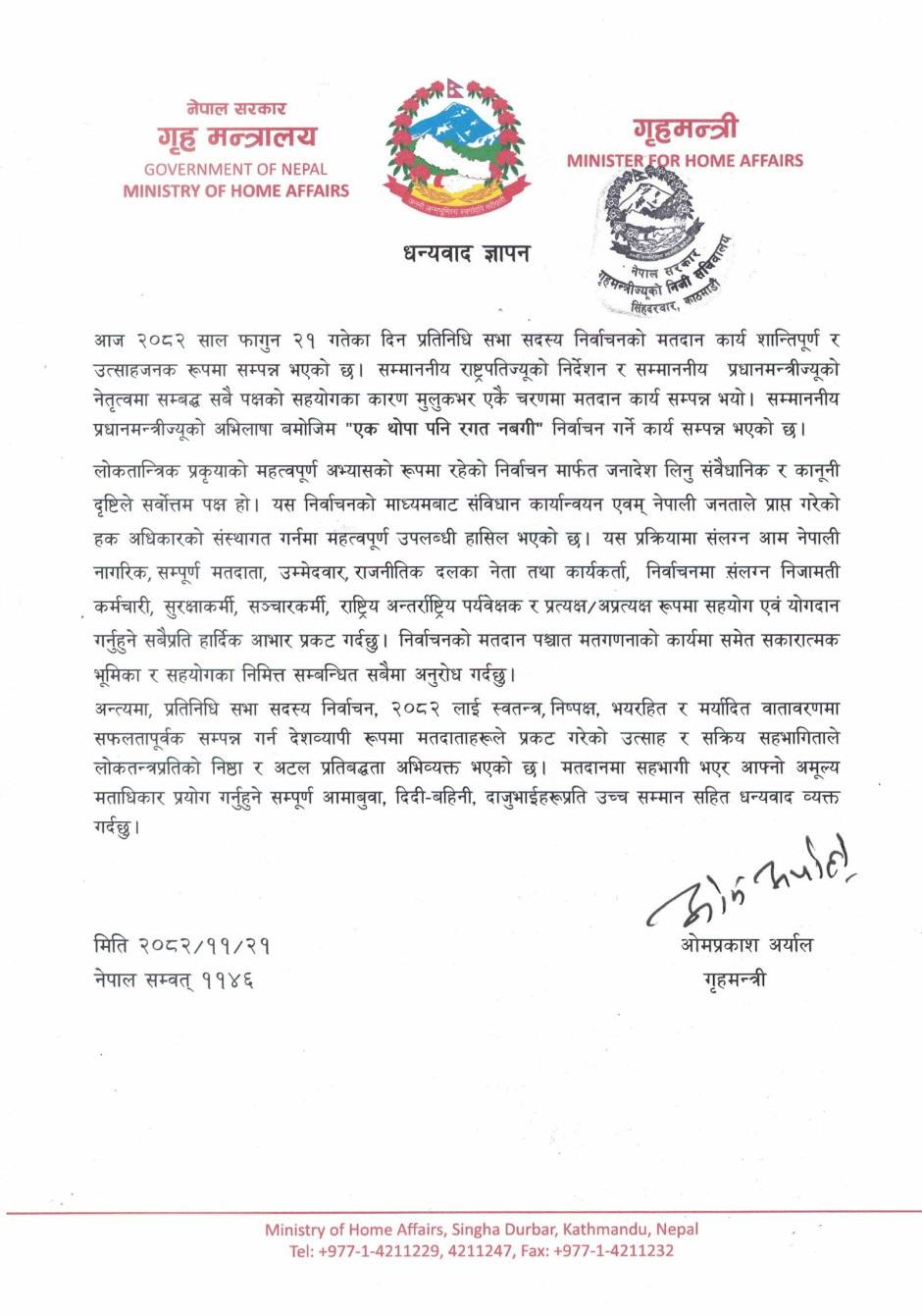 गृह मन्त्रालयसँग सम्बन्धित गुनासोका लागि सम्पर्क नम्बर