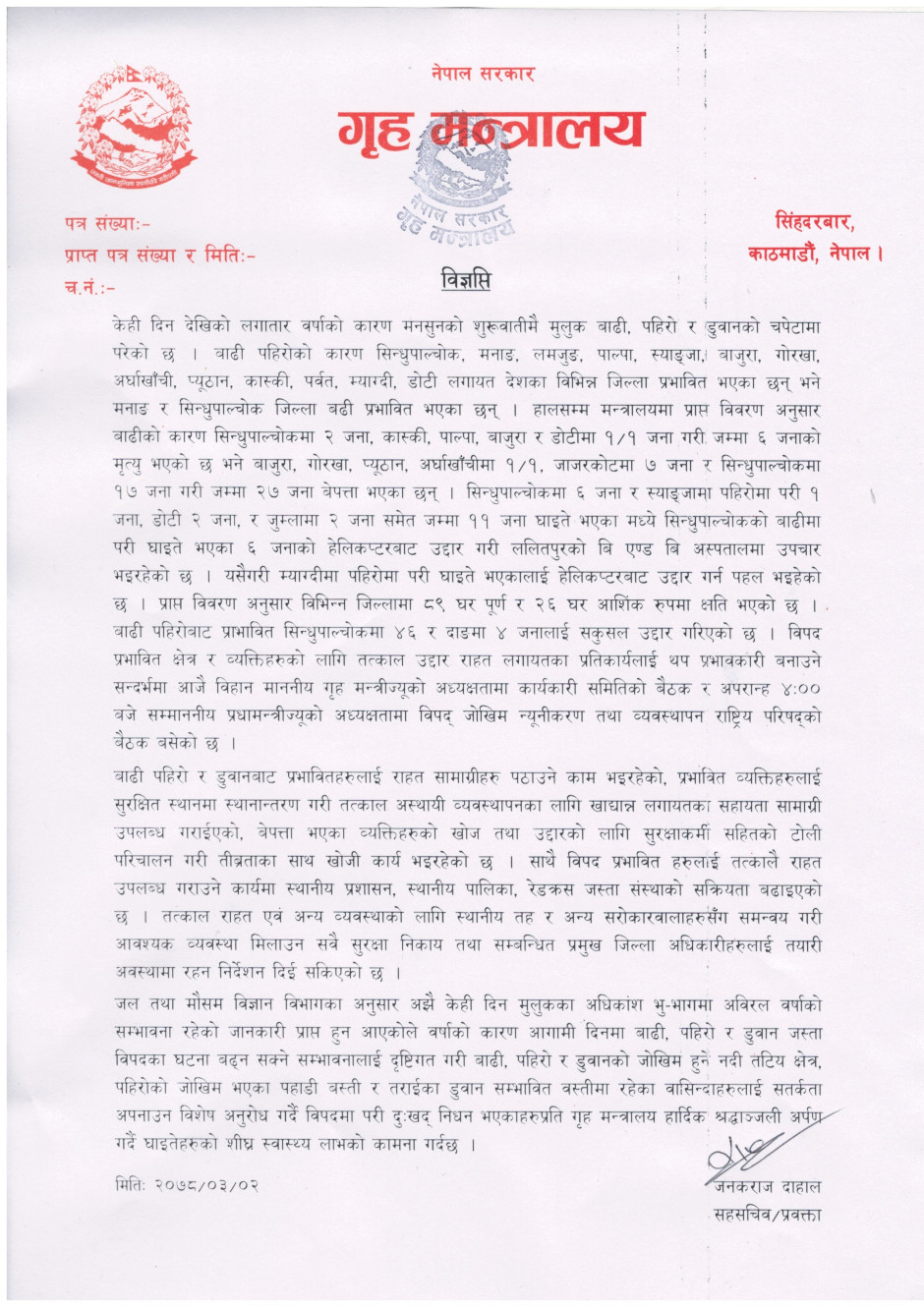 प्रेस बिज्ञप्ति